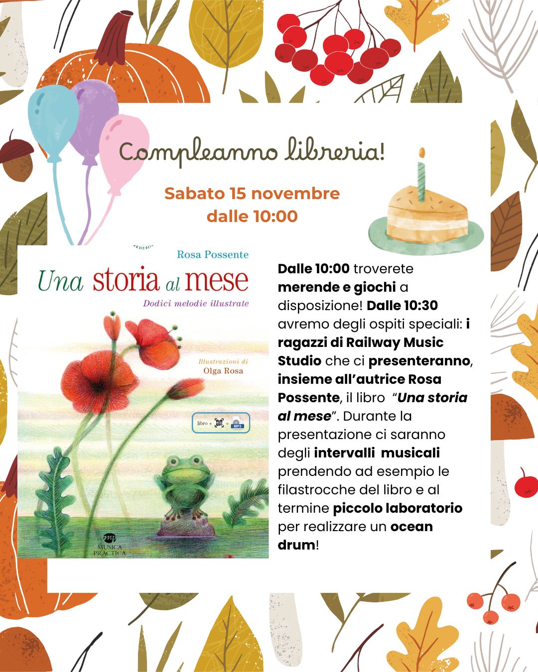 Sabato 15 novembre vi aspetto dalle 10:00 per la festa di compleanno della libreria! Per tutta la mattina ci saranno merende e giochi a disposizione e dalle 10:30 presentazione di un libro musicale e piccolo laboratorio!
